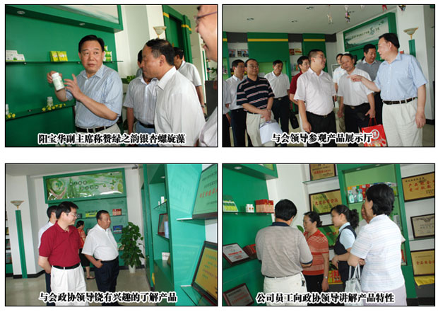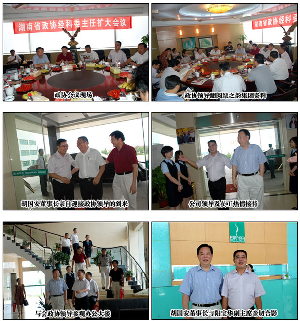 二〇〇八年七月十六日,湖南省政協(xié)經(jīng)科委主任擴(kuò)大會(huì)議在綠之韻集團(tuán)現(xiàn)代化辦公大樓五樓會(huì)議室召開(kāi)。作為湖南省第十屆政協(xié)委員的胡國(guó)安董事長(zhǎng)十分重視此次向政協(xié)領(lǐng)導(dǎo)們展示綠之韻集團(tuán)面貌的機(jī)會(huì),公司上下都要求以最高規(guī)格進(jìn)行接待。前來(lái)參加會(huì)議的有:湖南省政協(xié)副主席陽(yáng)寶華,湖南省政協(xié)副主席、民建省委主委龍國(guó)健,湖南省政協(xié)常委、副秘書(shū)長(zhǎng)向邦柱,經(jīng)科委副主任、湖南省商務(wù)廳廳長(zhǎng)向力力,湖南省政協(xié)常委、經(jīng)科委副主任、省國(guó)稅局局長(zhǎng)程安亭等二十多位湖南省政協(xié)領(lǐng)導(dǎo)。會(huì)議議程首先由湖南省政協(xié)委員、綠之韻集團(tuán)董事長(zhǎng)兼總裁胡國(guó)安向大家介紹了綠之韻集團(tuán)的規(guī)模和發(fā)展現(xiàn)狀。參加此次會(huì)議的政協(xié)領(lǐng)導(dǎo)中,大部分人已經(jīng)不是第一次來(lái)訪考察綠之韻,此次政協(xié)會(huì)議選址在綠之韻集團(tuán)內(nèi)部召開(kāi),也表達(dá)了湖南省政協(xié)領(lǐng)導(dǎo)們對(duì)綠之韻集團(tuán)的支持與厚愛(ài)。隨后,由湖南省政協(xié)常委、經(jīng)科委主任吳金明向大家通報(bào)了湖南省政協(xié)重點(diǎn)調(diào)研課題《以“兩型社會(huì)”建設(shè)為契機(jī),推進(jìn)湖南特色新型城市進(jìn)程》的有關(guān)情況;最后,大家對(duì)當(dāng)前經(jīng)濟(jì)熱點(diǎn)問(wèn)題——“雙防”(防止經(jīng)濟(jì)增長(zhǎng)由偏快轉(zhuǎn)為過(guò)熱、防止價(jià)格由結(jié)構(gòu)性上漲演變?yōu)槊黠@通貨膨脹)展開(kāi)了熱烈的談?dòng)憽?br /> 會(huì)議圓滿結(jié)束后,胡國(guó)安董事長(zhǎng)陪同與會(huì)的政協(xié)領(lǐng)導(dǎo)參觀了綠之韻標(biāo)準(zhǔn)形像店的展示廳,大家對(duì)品種繁多的綠之韻產(chǎn)品和琳瑯滿目的各項(xiàng)榮譽(yù)獎(jiǎng)牌嘖嘖稱嘆,特別是陽(yáng)寶華副主席向大家大力推薦起他所熟知并一直在服用的綠之韻銀杏螺旋藻片,連聲稱贊這是保健的好產(chǎn)品。同時(shí),各位政協(xié)領(lǐng)導(dǎo)也對(duì)綠之韻集團(tuán)全力配合省政協(xié)開(kāi)好這次會(huì)議所做的工作給予了高度肯定和贊揚(yáng),對(duì)胡國(guó)安董事長(zhǎng)領(lǐng)導(dǎo)下的綠之韻公司未來(lái)的發(fā)展表示關(guān)注和支持。