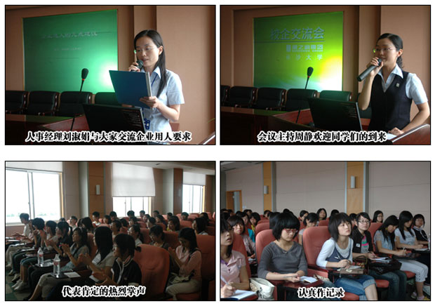 2008年6月17日,為響應(yīng)共青團(tuán)省委人才培養(yǎng)計(jì)劃,加強(qiáng)學(xué)校和企業(yè)更好的交流合作,實(shí)現(xiàn)學(xué)校輸送合適人才到企業(yè),企業(yè)順利引入理想人才,在湖南省共青團(tuán)省委的組織下,長(zhǎng)沙大學(xué)大一文秘專業(yè)的幾十名大學(xué)生走進(jìn)了享有盛譽(yù)的綠之韻集團(tuán),與企業(yè)進(jìn)行一次零距離接觸。