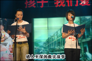 5月20日,綠之韻集團(tuán)董事長(zhǎng)兼總裁胡國(guó)安、董事長(zhǎng)助理、綠之韻慈善基金秘書(shū)長(zhǎng)馬艷、分銷(xiāo)商咨詢管理委員會(huì)副會(huì)長(zhǎng)曹鳳華作為愛(ài)心企業(yè)代表參加了湖南衛(wèi)視“川湘一家親”“孩子,我們愛(ài)你”抗震救災(zāi)希望工程專(zhuān)題晚會(huì)。綠之韻慈善基金捐贈(zèng)25萬(wàn)元,用于災(zāi)區(qū)援建災(zāi)毀學(xué)校。胡國(guó)安董事長(zhǎng)接受記者采訪時(shí)說(shuō):“綠之韻人在行動(dòng),我們要為汶川地震災(zāi)難中失去家園和學(xué)校的孩子們獻(xiàn)上一片愛(ài)心!”