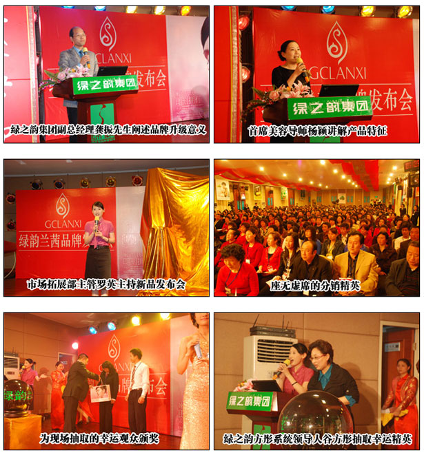 2008年3月16日,綠之韻·綠韻蘭茜品牌發(fā)布會在綠之韻集團教育培訓中心隆重舉行,前來參加2008綠之韻品牌建設(shè)年高峰論壇(第一場)的綠之韻方彤系統(tǒng)的460余名精英見證了這場以“同一個品牌,同一個夢想”為主題的發(fā)布會。綠之韻集團董事長兼總裁胡國安先生、董事常務副總經(jīng)理勞嘉女士、副總經(jīng)理龔振先生、總裁助理兼首席美容導師楊穎女士、綠之韻集團企業(yè)戰(zhàn)略發(fā)展顧問禹露先生出席發(fā)布儀式,并為綠韻蘭茜品牌揭幕。