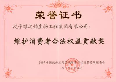 綠之韻集團作為湖南省民營企業(yè)代表連續(xù)四年榮獲 “消費者信得過單位”,被列為此次論壇的貴賓邀請單位并被論壇組委會授予“維護消費者合法權(quán)益貢獻獎”,董事長兼總裁胡國安先生出席了此次論壇,并與泛珠區(qū)九省工商行政部門領(lǐng)導(dǎo)共同交流企業(yè)責(zé)任及消費者維權(quán)等方面的問題。