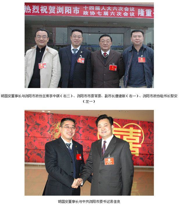 2007年1月20日至22日,政協(xié)瀏陽市第七屆委員會(huì)第六次會(huì)議在瀏陽市歐陽予倩大劇院順利召開。瀏陽市政協(xié)委員、綠之韻集團(tuán)董事長兼總裁胡國安先生全程參與了此次會(huì)議。