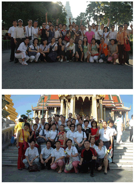 此刻正是泰國一年中氣候最宜人的涼季,金碧輝煌、璀璨奪目的“大皇宮”,古色古香的泰國第一國寶:有著二千年歷史的玉佛寺,其雄偉壯觀,讓所有的綠之韻精英大開眼界。旅游途中,觀行宮、游湄南河、欣賞精彩刺激的人蛇表演,在泰國旅游局指定的皮革加工廠,珠寶展示中心精心挑選禮物,乘太平洋上的東方公主號(hào)豪華游艇夜游,觀看妖嬈艷麗的人妖表演,享用豐盛的海鮮大餐……泰國異域風(fēng)情令綠之韻的精英們流連忘返,樂在其中。