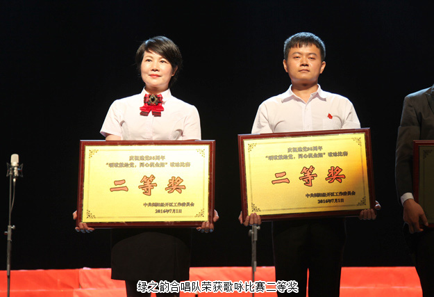 大會(huì)最令人熱血沸騰的環(huán)節(jié)是慶祝建黨95周年歌詠比賽的舉辦。《歌唱祖國》、《唱支山歌給黨聽》、《黨啊,親愛的媽媽》等一支支弘揚(yáng)偉大祖國繁榮昌盛的主旋律在金陽唱響。綠之韻合唱隊(duì)在集團(tuán)黨總支帶領(lǐng)下以飽滿的熱情和嘹亮的歌聲表演了《四渡赤水出奇兵》,積極進(jìn)取、奮發(fā)向上的精神風(fēng)貌感染了現(xiàn)場(chǎng)每一個(gè)人,并最終榮獲歌詠比賽二等獎(jiǎng)。