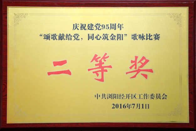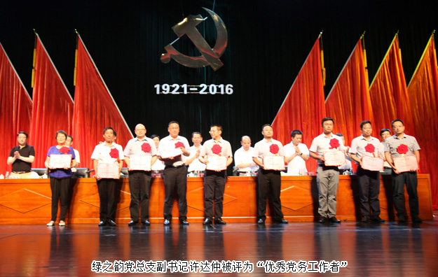 2016年7月1日,瀏陽經(jīng)開區(qū)慶祝建黨95周年表彰大會(huì)暨合唱比賽在園區(qū)金陽文化藝術(shù)中心隆重召開。全體黨委領(lǐng)導(dǎo)、機(jī)關(guān)各支部、各非公經(jīng)濟(jì)黨組織以及園區(qū)各企業(yè)代表團(tuán)等參加會(huì)議。會(huì)上,綠之韻集團(tuán)黨總支部憑借出色的黨建工作再次被評(píng)為“先進(jìn)基層黨組織”, 綠之韻黨總支副書記許達(dá)仲被評(píng)為“優(yōu)秀黨務(wù)工作者”,公司員工黃姣、楊丹被評(píng)為園區(qū)“優(yōu)秀共產(chǎn)黨員”。