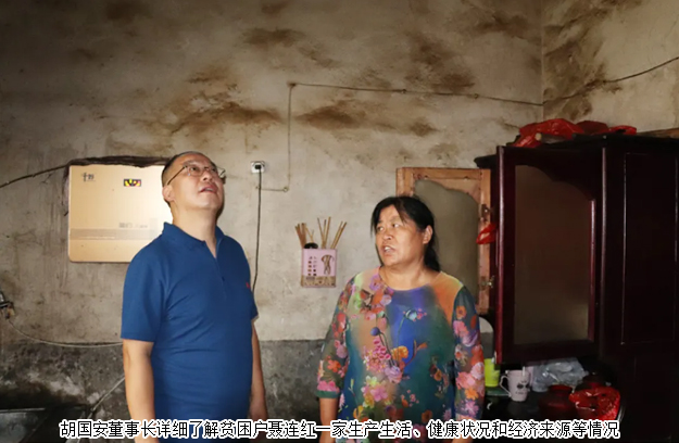 走訪中,胡國安董事長(zhǎng)來到漣源市渡頭塘鎮(zhèn)新沺村結(jié)對(duì)幫扶戶聶連紅家中。聶連紅夫妻雙雙出門打工,父親身體不好在家休養(yǎng),母親易仁娥在家照顧老伴和都還在讀書的孫子。聶連紅的三個(gè)孩子分別在讀初中和小學(xué),最大的孩子馬上要初中畢業(yè)讀高中,家里沒有充足的勞動(dòng)力,但是家庭負(fù)擔(dān)卻很重。胡國安董事長(zhǎng)通過易仁娥老人家的敘述,詳細(xì)了解聶連紅一家生產(chǎn)生活、健康狀況和經(jīng)濟(jì)來源等情況,并與他們介紹分析外出務(wù)工、發(fā)展家庭種植業(yè)和養(yǎng)殖業(yè)等多種脫貧途徑。胡國安董事長(zhǎng)進(jìn)一步表示,聶連紅一家三個(gè)孩子,教育任務(wù)重,我們會(huì)根據(jù)這個(gè)具體情況制定教育扶貧方案,只要三個(gè)孩子肯讀書,就給予全力支持,絕不讓孩子們沒書讀。胡總鼓勵(lì)易仁娥老人家也要照顧好自己的身體,樂觀面對(duì)生活,相信有黨和政府的關(guān)心幫助,日子會(huì)越過越好。