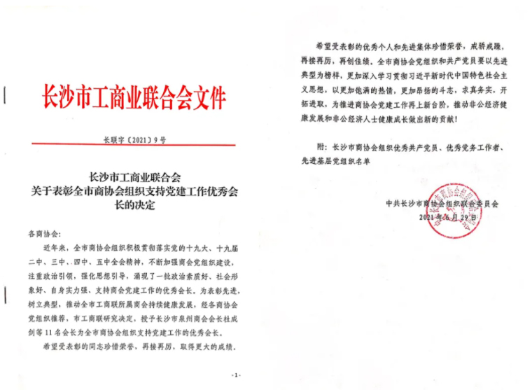 此次榮獲“支持商會(huì)黨建工作優(yōu)秀會(huì)長(zhǎng)”,胡國(guó)安董事長(zhǎng)表示,既是榮譽(yù),也是一份沉甸甸的責(zé)任。自2017年長(zhǎng)沙市安化商會(huì)成立以來(lái),作為商會(huì)會(huì)長(zhǎng),他攻堅(jiān)克難,盡職盡責(zé),主動(dòng)承擔(dān)社會(huì)責(zé)任,積極參與并引導(dǎo)廣大會(huì)員共同參與到精準(zhǔn)脫貧、鄉(xiāng)村振興、光彩事業(yè)和社會(huì)公益事業(yè)。未來(lái),他將繼續(xù)充分發(fā)揮會(huì)長(zhǎng)作用,認(rèn)真學(xué)習(xí)和貫徹黨的路線(xiàn)、方針、政策;積極履職盡責(zé),不斷推進(jìn)商會(huì)工作的規(guī)范化、制度化和創(chuàng)新發(fā)展,切實(shí)提高商會(huì)工作效率和服務(wù)水平,吸納更多的安化籍優(yōu)秀企業(yè)家入會(huì),把長(zhǎng)沙市安化商會(huì)打造成具有地方特色的知名商會(huì),為省市經(jīng)濟(jì)發(fā)展貢獻(xiàn)出商會(huì)力量。