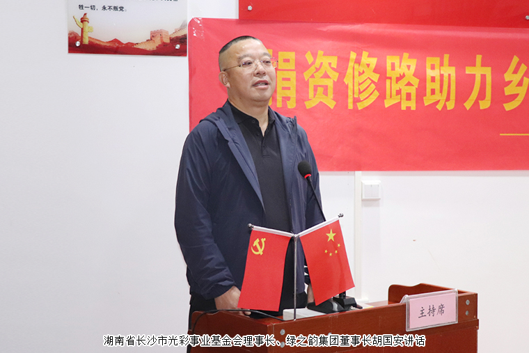修路暖民心,建設(shè)報(bào)桑梓。胡國安董事長在企業(yè)發(fā)展建設(shè)過程中不忘初心、回饋家鄉(xiāng)、回報(bào)社會(huì)的善心義舉進(jìn)行榮譽(yù)表彰。胡國安董事長動(dòng)情表示:企業(yè)小的時(shí)候是自己的,發(fā)展壯大了就是國家的、社會(huì)的。作為是一名從安化胡家村走出來的企業(yè)家,多年來他始終對(duì)家鄉(xiāng)的發(fā)展保持著高度關(guān)注,先后通過捐贈(zèng)愛心校車、修橋鋪路、產(chǎn)業(yè)扶貧、愛心慰問等多種形式助力家鄉(xiāng)建設(shè),感恩回報(bào)父老鄉(xiāng)親。此次通過長沙光彩事業(yè)基金會(huì)定向捐贈(zèng)100萬元用于胡家村道路擴(kuò)改提質(zhì),旨在助力家鄉(xiāng)幸福美麗鄉(xiāng)村建設(shè)和生態(tài)旅游產(chǎn)業(yè)發(fā)展,為家鄉(xiāng)的父老鄉(xiāng)親們做點(diǎn)實(shí)事。未來,他將帶領(lǐng)綠之韻集團(tuán)將繼續(xù)創(chuàng)新工作思路,注重幫扶實(shí)效,進(jìn)一步推動(dòng)輸血式幫扶向產(chǎn)業(yè)化發(fā)展、造血式幫扶轉(zhuǎn)變。作為湖南省長沙市光彩事業(yè)基金會(huì)理事長,他將在長沙市委統(tǒng)戰(zhàn)部、長沙市工商聯(lián)的統(tǒng)一部署下,率先垂范,全面推進(jìn)家鄉(xiāng)的鄉(xiāng)村振興建設(shè),以良好工作業(yè)績回報(bào)各位領(lǐng)導(dǎo)和同仁們的重托與期望。作為一名民營企業(yè)家,他將繼續(xù)引領(lǐng)企業(yè)積極履行社會(huì)責(zé)任,高度關(guān)注和支持家鄉(xiāng)益陽的建設(shè)和發(fā)展,用實(shí)實(shí)在在的行動(dòng)帶動(dòng)更多的愛心人士和企業(yè)參與到“萬企興萬村”和助力光彩事業(yè)中來,使家鄉(xiāng)人民得實(shí)惠、普受惠、常受惠,努力為現(xiàn)代化新益陽建設(shè)貢獻(xiàn)自己的一份力量。