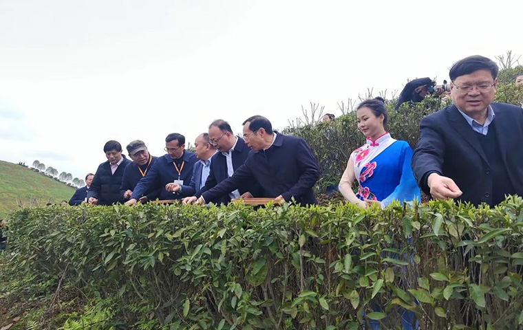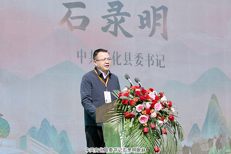 中共安化縣委書記石錄明致歡迎辭。人與人的相遇莫過于久別重逢,人與茶的相遇便是前世今生。非常榮幸,今天由我用一盞茶的時間與大家一同品味安化獨特的詩和遠(yuǎn)方。從春天出發(fā),用一盞茶的時間,感受萬里茶路馬蹄聲的古道茶香之美。從春天出發(fā),用一盞茶的時間,領(lǐng)略高山流水遇知音的山水畫卷之美。從春天出發(fā),用一盞茶的時間,縱享十步之內(nèi)有芳草的人杰地靈之美。安化黑茶開園節(jié)的舉辦,標(biāo)志著安化36萬畝茶園進(jìn)入了全面開采期。人生如茶,希望我們都能從春天出發(fā),從安化出發(fā),一起赴一場春日采茶的清新之旅。