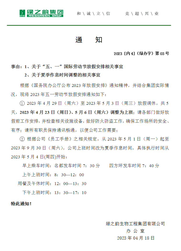 通 知 丨關(guān)于“五、一勞動(dòng)節(jié)”放假安排和夏季作息時(shí)間調(diào)整的相關(guān)事宜