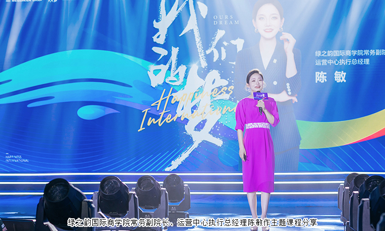 “這是我們的夢(mèng),一個(gè)真實(shí)的夢(mèng),讓每個(gè)人的每顆心,緊緊相擁……”一首《我們的夢(mèng)》合唱,向現(xiàn)場(chǎng)的綠之韻幸福國(guó)際家人們描繪了一幅用夢(mèng)想與淚水交織的美好畫面。綠之韻國(guó)際商學(xué)院常務(wù)副院長(zhǎng)、運(yùn)營(yíng)中心執(zhí)行總經(jīng)理陳敏作《我們的夢(mèng)》主題分享,深刻詮釋了綠之韻幸福國(guó)際家人朝著共同的夢(mèng)想團(tuán)結(jié)一心、不斷拼搏奮斗的精神內(nèi)涵。