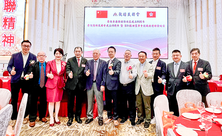 為慶祝香港特別行政區(qū)成立26 周年暨觀塘民聯(lián)會(huì)成立 49 周年,2023年7月13日,香港觀塘民聯(lián)會(huì)舉行第 24 屆理監(jiān)事會(huì)就職典禮聯(lián)歡晚宴。香港中聯(lián)辦九龍工作部一級(jí)巡視員、副部長祝小東,香港勞工及福利局副局長何啟明,香港民政事務(wù)總署觀塘民政事務(wù)專員林兆康太平紳士,香港社會(huì)福利署觀塘福利專員林小娟,香港觀塘區(qū)議會(huì)主席柯創(chuàng)盛等領(lǐng)導(dǎo)嘉賓出席活動(dòng)。香港觀塘民聯(lián)會(huì)理事長洪錦鉉帶領(lǐng)理監(jiān)事會(huì)成員、會(huì)長、副會(huì)長代表等參加活動(dòng)。長沙市海外聯(lián)誼會(huì)副會(huì)長、香港中華教育基金榮譽(yù)主席、香港長沙聯(lián)誼會(huì)會(huì)長、第十二屆湖南省政協(xié)委員、綠之韻集團(tuán)董事長胡國安參加活動(dòng),并受聘為香港觀塘民聯(lián)會(huì)第二十四屆理監(jiān)事會(huì)名譽(yù)會(huì)長。