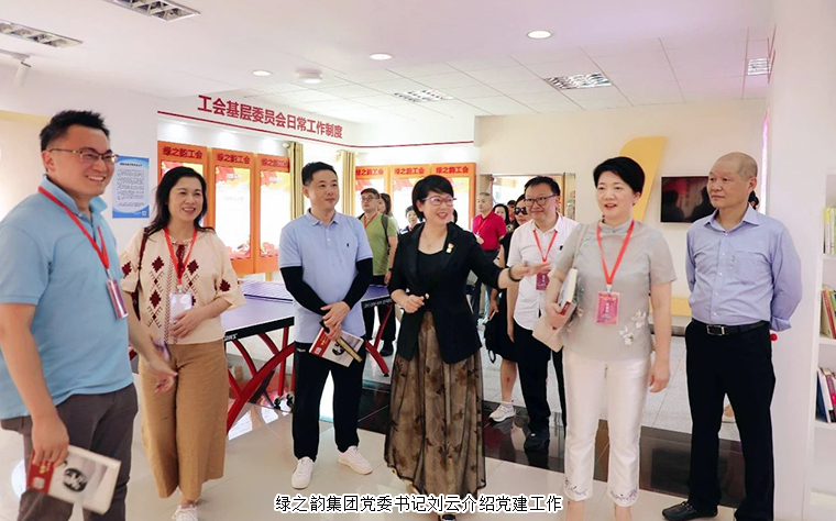 隨后,代表團(tuán)一行來到黨建文化教育基地。綠之韻集團(tuán)黨委書記劉云就非公黨建情況向考察組一行作了詳細(xì)介紹。綠之韻始終將非公黨建工作置于發(fā)展戰(zhàn)略高度,自2006年成立黨支部,2013年獲批成立黨總支,2016年8月獲批成立黨委以來,堅(jiān)持構(gòu)建以集團(tuán)黨組織為核心,以集團(tuán)工會、公益基金會為主體,注重紅色基因塑造的新時代非公黨建新生態(tài),實(shí)施“指導(dǎo)式”“責(zé)任式”“溫情式”管理,在全行業(yè)內(nèi)創(chuàng)建了第一家黨建文化教育基地,形成了具有綠之韻特色的非公黨建工作品牌。