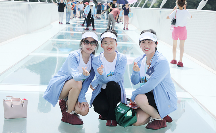 旅途第一站,綠之韻家人們來到張家界大峽谷景區(qū),這里的網(wǎng)紅打卡地——張家界大峽谷玻璃橋(全球第一座玻璃橋),每年吸引了無數(shù)人來游覽,這是一座景觀玻璃橋梁,兼景區(qū)行人通行、蹦極、游覽、溜索和T臺等功能。是世界最高、跨度最長的玻璃橋,大橋建在大峽谷兩側(cè)的峰頂上,橫跨大峽谷。在這里,觀蝴蝶泉瀑布、天仙水瀑布和竹仙泉,翠潭攬瀑;在一線天觀天梯棧道、石上森林和石壁裂縫;探怪謎洞,探索佛手遮天和爛船巖千古流傳的未解之謎?!罢驹诓A蛏峡创髰{谷實屬壯觀,感嘆中國的大好河山如此多嬌。”“玻璃橋是一個偉大的建筑,走在橋上有一種飛翔的感覺,值得去看看?!本G之韻精英們游覽其中樂趣無窮,穿梭在大自然的奇觀里,稱贊、驚呼、拍照,流連忘返。沒有彼此的信任,就無法感受前所未有的快樂,往往站在最高處才能看見最美的風(fēng)景,此刻團隊的力量也是最美的心房,這一刻一切都是如此的美好。