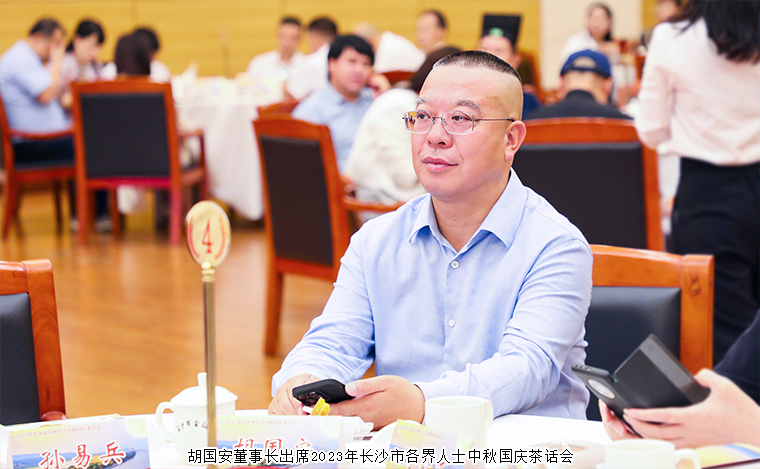 2023年9月28日,長(zhǎng)沙市舉行中秋國(guó)慶茶話(huà)會(huì)。湖南省人民政府副省長(zhǎng)、中共長(zhǎng)沙市委副書(shū)記、市長(zhǎng)周海兵出席活動(dòng)。譚勇、文樹(shù)勛、陳剛、彭華松、陳剛(紀(jì)委)、劉匯、鄒特、汪立生、張賢遵、簡(jiǎn)用超、姚五零等市領(lǐng)導(dǎo)和老同志出席。長(zhǎng)沙市人大代表、中國(guó)國(guó)際商會(huì)湖南商會(huì)副會(huì)長(zhǎng)、香港長(zhǎng)沙聯(lián)誼會(huì)會(huì)長(zhǎng)、綠之韻集團(tuán)董事長(zhǎng)胡國(guó)安與全市各界人士代表歡聚一堂,共賀佳節(jié),共敘情誼,共話(huà)發(fā)展。