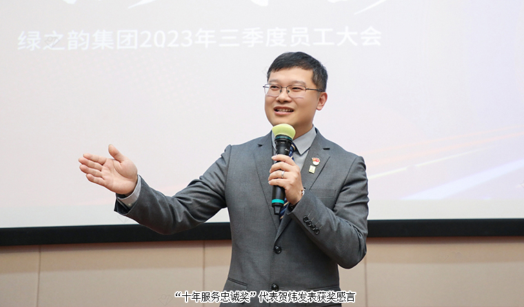 在全場熱烈的掌聲和萬眾矚目中,綠之韻集團(tuán)胡國安董事長發(fā)表重要講話。他再次對全體員工的努力和付出表示肯定,對第三季度所有獲獎(jiǎng)員工致以衷心祝賀,并對獲獎(jiǎng)員工給予期許,希望大家能發(fā)揮才干,為公司向前發(fā)展提供動(dòng)力。他表示,綠之韻成立二十年,經(jīng)歷無數(shù)艱辛曲折,收獲了質(zhì)的飛躍與發(fā)展。20歲的綠之韻擁有積極向上、創(chuàng)新求變的精神力量,希望大家繼續(xù)發(fā)揚(yáng)綠之韻精神,堅(jiān)持為用戶提供有價(jià)值的產(chǎn)品和服務(wù)不改變;為員工提供收獲成長的價(jià)值不改變;為社會(huì)合作伙伴創(chuàng)造價(jià)值不改變。他提出了三點(diǎn)寄望,一是希望所有綠之韻人可以躬身入局、親力親為;二是成為真正為公司解決問題的人;三是希望所有人都有降本增效、化繁為簡的能力,可以對結(jié)果負(fù)責(zé)。未來,期待所有綠之韻人永懷感恩之心,積極參與公司發(fā)展建設(shè),同頻共振、同舟共濟(jì)、共同成長。相信在綠之韻這棵大樹之下,所有的福氣都會(huì)如綠蔭,庇護(hù)著所有綠之韻人,讓綠之韻蓬勃健康發(fā)展,我們現(xiàn)在唯一要做的就是最好的自己,所有一切美好必將如約而至!