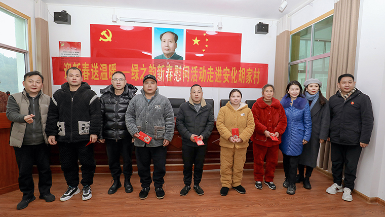 近日,綠之韻集團(tuán)積極響應(yīng)黨和政府的號召,通過湖南省慈善總會捐資100萬助力全省范圍內(nèi)新春慰問活動的開展。2024年2月2日,冒著深冬嚴(yán)寒、冰霜凍雨,湖南省慈善總會副會長、長沙市人大代表、綠之韻集團(tuán)董事長胡國安,湖南省政協(xié)委員、綠之韻集團(tuán)總裁、綠之韻公益基金會理事長勞嘉,安化縣人大代表、綠之韻集團(tuán)常務(wù)副總裁胡均安,綠之韻集團(tuán)市場營銷中心總經(jīng)理戴三省,安化縣政協(xié)委員、綠之韻集團(tuán)副總經(jīng)理胡武安,瀏陽市政協(xié)委員、綠之韻公益基金會秘書長蔣文,綠之韻集團(tuán)市場營銷中心業(yè)務(wù)總經(jīng)理趙蕾等集團(tuán)高管帶領(lǐng)市場領(lǐng)導(dǎo)一行從長沙出發(fā),驅(qū)車200余公里回到家鄉(xiāng)安化開展新春慰問公益活動,為當(dāng)?shù)氐睦щy家庭送去新春的祝福和關(guān)愛。安化縣政協(xié)副主席、縣工商聯(lián)主席劉暢術(shù),安化縣統(tǒng)計(jì)局黨組書記寧偉,中共冷市鎮(zhèn)黨委書記胡寶成,冷市鎮(zhèn)鎮(zhèn)長夏剛花,胡家村村支書胡利民帶領(lǐng)村支兩委、村民代表參加活動。