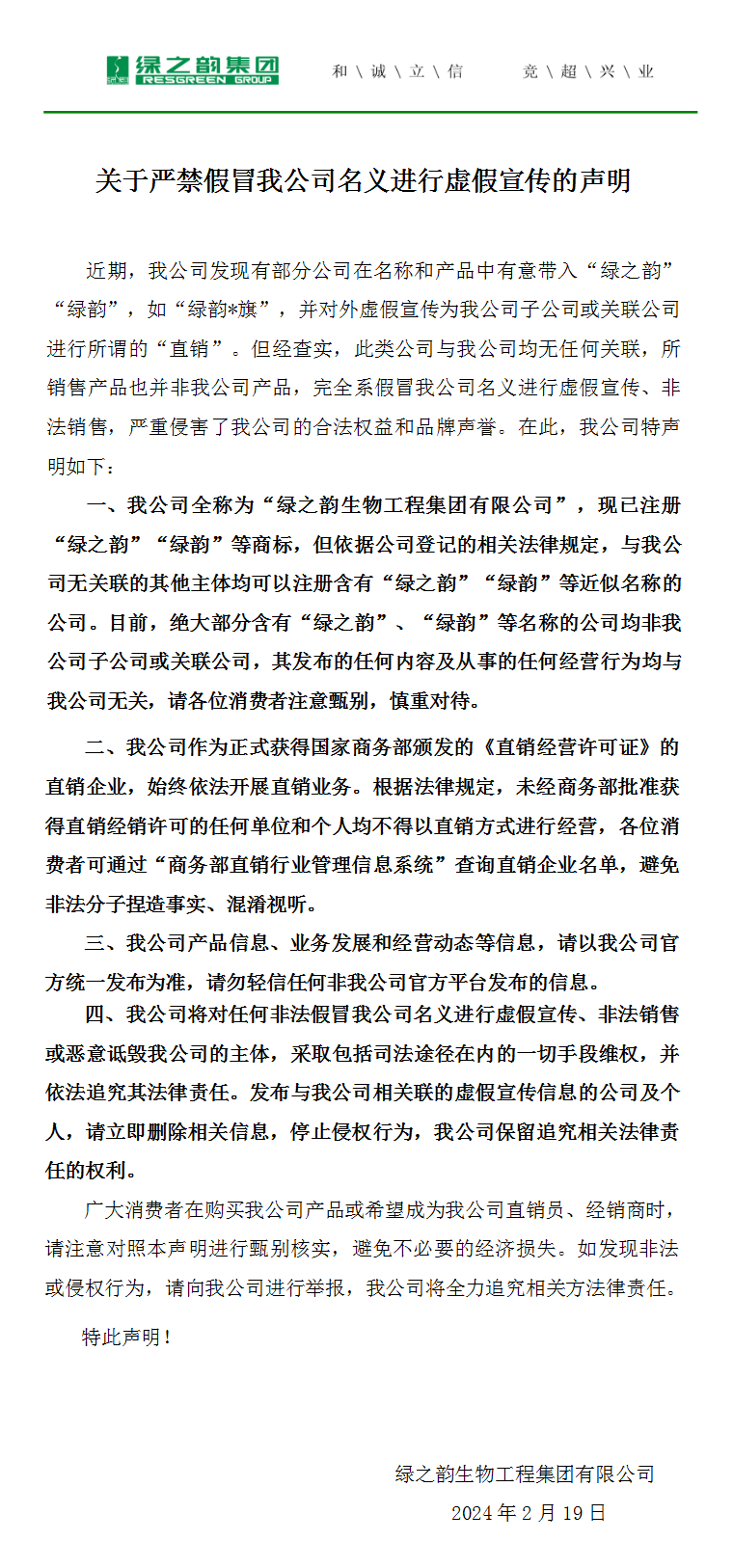 關(guān)于嚴禁假冒我公司名義進行虛假宣傳的聲明