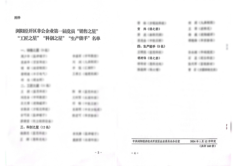 會上,還對瀏陽經(jīng)開區(qū)非公企業(yè)第一屆黨員“銷售之星”“工匠之星”“科創(chuàng)之星”“生產(chǎn)能手”的獲得者進(jìn)行了表彰。綠之韻集團(tuán)科研中心黨支部書記賀煒獲得“科創(chuàng)之星”稱號,綠之韻保健日用品黨支部黨員胡樹鋒獲得“生產(chǎn)能手”稱號。