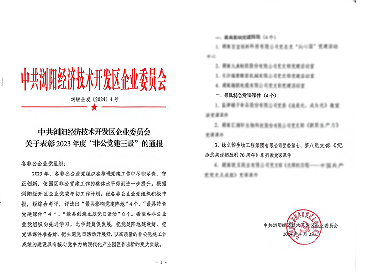 推進(jìn)會(huì)上,瀏陽(yáng)經(jīng)開(kāi)區(qū)企業(yè)黨委專(zhuān)職副書(shū)記陳飛雪作工作報(bào)告。瀏陽(yáng)經(jīng)開(kāi)區(qū)組織工作局局長(zhǎng)宋孟宣讀了《關(guān)于表彰 2023 年度“非公黨建三最”的通報(bào)》?,F(xiàn)場(chǎng)對(duì)“最具影響黨建陣地”“最具特色黨課課件”“最具創(chuàng)意主題黨日活動(dòng)”獲獎(jiǎng)單位進(jìn)行了表彰。綠之韻集團(tuán)黨委報(bào)送的《紀(jì)念抗美援朝勝利70周年》黨課課件獲評(píng)“最具特色黨課課件”。