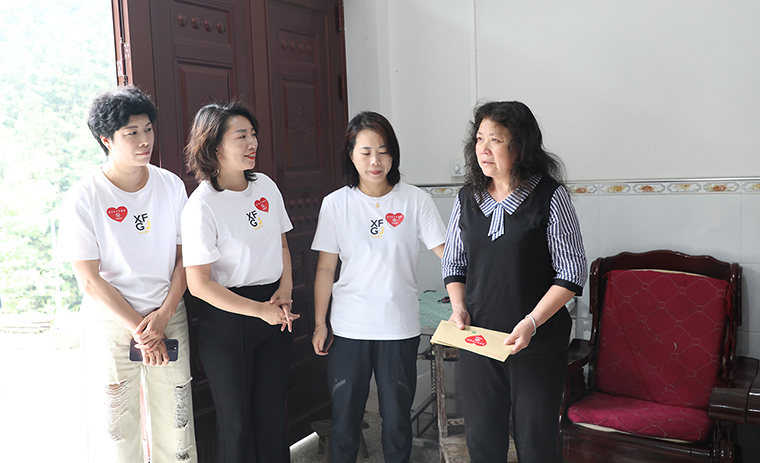 慰問(wèn)組一行向大山里開(kāi)了很長(zhǎng)的路,又下車步行了很久,爬過(guò)一個(gè)小山坡才來(lái)到含海的家里。家里只有他的妻子菊姐在。今年3月,菊姐被檢查出患有肺部腫瘤,安化縣里醫(yī)療條件有限,他們只能租車前往省會(huì)城市長(zhǎng)沙就醫(yī)。前段時(shí)間,菊姐剛在湘雅醫(yī)院做了手術(shù),花費(fèi)了10多萬(wàn),現(xiàn)在正處于術(shù)后恢復(fù)期,需要定期復(fù)查和長(zhǎng)期吃藥。面對(duì)慰問(wèn)組一行,菊姐紅了眼,唯一的女兒遠(yuǎn)嫁,丈夫含海為了籌措醫(yī)藥費(fèi)只能出去打點(diǎn)零工,平常都是隔壁鄰居稍微照應(yīng)下她,“我現(xiàn)在什么都做不了,連為你們泡杯熱茶我都做不到……”夏總握住她的手,親切囑咐她要放松心情,保持樂(lè)觀心態(tài),積極面對(duì)生活。