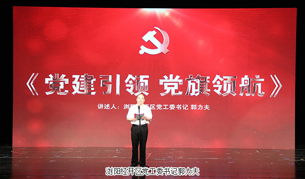 瀏陽經(jīng)開區(qū)黨工委書記郭力夫以“黨建引領,黨旗領航”為主題發(fā)表講話。他首先代表瀏陽經(jīng)開區(qū)黨工委向受到表彰的黨建示范點、先進基層黨組織和優(yōu)秀共產(chǎn)黨員表示熱烈的祝賀。他表示,此次表彰活動旨在進一步貫徹落實黨的十九大精神,高舉新時代中國特色社會主義思想的偉大旗幟,促進園區(qū)高質(zhì)量發(fā)展,匯聚磅礴力量。未來,瀏陽經(jīng)開區(qū)將繼續(xù)堅持黨建引領,推動園區(qū)轉型升級,突出“產(chǎn)業(yè)項目建設年”“營商環(huán)境優(yōu)化年”“黨支部建設年”的工作主線,不斷開創(chuàng)園區(qū)工作的新局面,以實際行動為黨旗爭輝添彩,為發(fā)展建功立業(yè)。