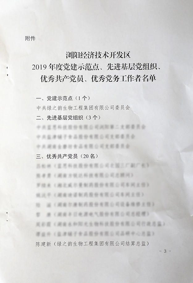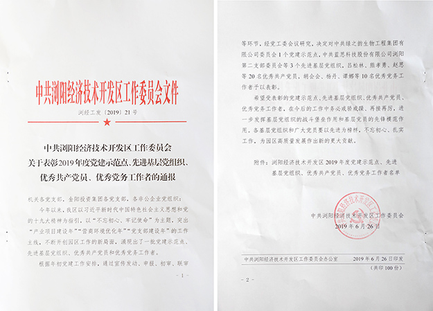 2019年6月27日,瀏陽經(jīng)開區(qū)黨工委在瀏陽金陽文化藝術中心召開2019年“七一”表彰大會。瀏陽經(jīng)開區(qū)黨工委書記郭力夫,瀏陽經(jīng)開區(qū)黨工委副書記、管委會主任談文昌以及全體黨委領導、機關黨員、非公經(jīng)濟黨組織負責人、優(yōu)秀黨員和2019年度新發(fā)展的預備黨員參加會議。綠之韻集團黨委書記劉云、黨委副書記許達仲帶領集團優(yōu)秀黨務工作者、優(yōu)秀黨員、預備黨員參加會議。