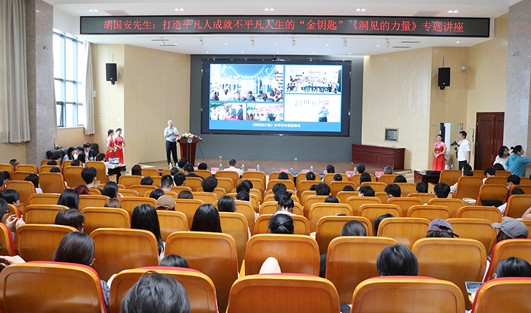 時(shí)值畢業(yè)季,為更好地引導(dǎo)學(xué)生明確人生方向,激發(fā)他們追求夢(mèng)想的勇氣和熱情,6月18日下午,應(yīng)長(zhǎng)沙師范學(xué)院邀請(qǐng),長(zhǎng)沙市人大代表、長(zhǎng)沙師范大學(xué)客座教授、綠之韻集團(tuán)董事長(zhǎng)胡國(guó)安在長(zhǎng)沙師范學(xué)院開展“打造平凡人成就不凡人生的金鑰匙——《洞見(jiàn)的力量》專題講座”,為到場(chǎng)的300余名師生帶來(lái)一場(chǎng)振奮人心、精彩紛呈的講座。中共長(zhǎng)沙市委統(tǒng)戰(zhàn)部副部長(zhǎng)、市僑辦主任楊光華,長(zhǎng)沙師范學(xué)院黨委書記羅婷,長(zhǎng)沙師范學(xué)院校長(zhǎng)曹曉鮮,長(zhǎng)沙師范學(xué)院黨委副書記周明俠,長(zhǎng)沙師范學(xué)院黨委委員、副校長(zhǎng)黃快林,奧運(yùn)冠軍、體育運(yùn)動(dòng)委員會(huì)專職副主任龔智超等領(lǐng)導(dǎo)參與此次活動(dòng)。