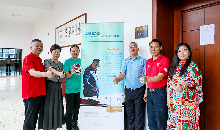 中共長(zhǎng)沙市委統(tǒng)戰(zhàn)部副部長(zhǎng)、市僑辦主任楊光華就專題講座發(fā)表了見(jiàn)解。他認(rèn)為,《洞見(jiàn)的力量》這本新書的出版,匯聚了胡國(guó)安先生的一種格局和力量,這種格局是胸懷國(guó)家的,釋放出精神的力量、信仰的力量、文化的力量和智慧的力量。是對(duì)“窮者獨(dú)善其身,達(dá)者兼濟(jì)天下”最好的詮釋。胡國(guó)安先生不僅把企業(yè)做大做好,也能夠影響和帶動(dòng)身邊更多的人一起創(chuàng)業(yè),去實(shí)現(xiàn)夢(mèng)想。在他看來(lái),與“看見(jiàn)”二字不同,“洞見(jiàn)”需要的是智慧、思考,是更深的一種綜合體驗(yàn)?zāi)芰Γ芸匆?jiàn)別人看不見(jiàn)的東西?!抖匆?jiàn)的力量》向我們講述了民營(yíng)企業(yè)走向成功的十二大發(fā)展引擎,他認(rèn)為無(wú)論是過(guò)去還是當(dāng)下創(chuàng)業(yè)都是艱難的,都需要有智慧和洞見(jiàn)的能力和才華、需要有堅(jiān)持的力量、更需要常懷感恩之心,與善同行、與愛(ài)同行。“真正的大愛(ài),不是簡(jiǎn)單的給予,而是去搭一座橋,鋪一條路,讓更多的人,抵達(dá)夢(mèng)想的棲息地?!币蝗鐣兴f(shuō),他勉勵(lì)大家能向胡國(guó)安先生學(xué)習(xí),繼續(xù)傳揚(yáng)和踐行家國(guó)情懷以及大愛(ài)精神,相信這本書可以點(diǎn)亮大家的創(chuàng)業(yè)夢(mèng)想,希望同學(xué)們?cè)谧龊帽韭毠ぷ鞯耐瑫r(shí),都能有余力去實(shí)現(xiàn)自己的理想,學(xué)以致用,學(xué)有所成。