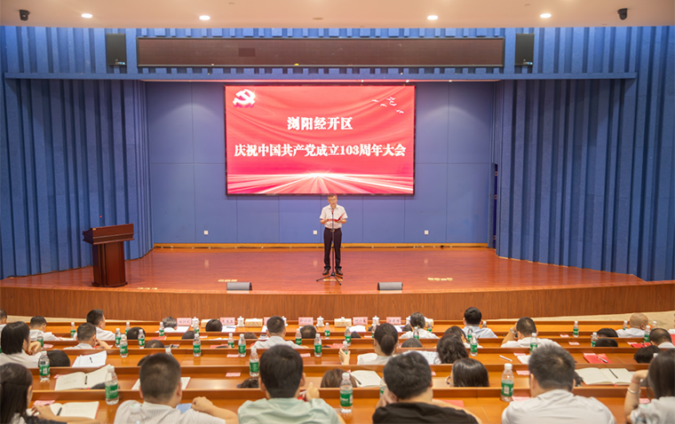 七一前夕,瀏陽經(jīng)開區(qū)召開慶祝中國共產(chǎn)黨成立103周年大會(huì)。瀏陽市經(jīng)開區(qū)黨工委書記鄭以仁出席,委領(lǐng)導(dǎo)羅其勝、何六生、肖賽男、唐建國、陳訓(xùn)武等出席會(huì)議。綠之韻集團(tuán)黨委書記劉云、黨委副書記許達(dá)仲帶領(lǐng)黨員代表參加會(huì)議。