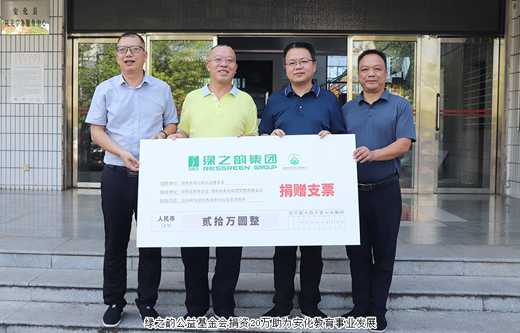 “我是安化走出來(lái)的寒門學(xué)子,我和很多同學(xué)一樣都是出生在貧苦的山村,從小就非??释叱龃笊?,能夠改變家族的命運(yùn),有機(jī)會(huì)幫助更多的人成長(zhǎng)和發(fā)展,有機(jī)會(huì)回報(bào)社會(huì)及家鄉(xiāng)?!本G之韻集團(tuán)董事長(zhǎng)胡國(guó)安深情地說(shuō),我們不僅要把企業(yè)做好,也要回饋社會(huì),十年樹木,百年樹人,捐資助學(xué)是最好的回饋社會(huì)方式。多年來(lái),綠之韻集團(tuán)始終堅(jiān)持把公益事業(yè)上升到企業(yè)發(fā)展戰(zhàn)略高度。先后在全國(guó)各地援建了11所希望學(xué)校,投入300萬(wàn)元在全國(guó)各地開展“綠韻圓夢(mèng)?書香助學(xué)”活動(dòng),陸續(xù)投入1000萬(wàn)元開展“樹人行動(dòng)”,投入1000萬(wàn)元設(shè)立“圓夢(mèng)基金”持續(xù)開展綠韻圓夢(mèng)行動(dòng)……累計(jì)向社會(huì)捐贈(zèng)款物8600多萬(wàn)元。今年8月,綠之韻公益基金會(huì)攜手湖南省慈善總會(huì)、芒果公益開啟“愛心改變命運(yùn)”助學(xué)季,上線“2024愛心改變命運(yùn)”網(wǎng)絡(luò)籌款募捐項(xiàng)目,向社會(huì)籌措助學(xué)資金,資助湖南省內(nèi)勵(lì)志學(xué)子圓夢(mèng)大學(xué)。希望通過(guò)持續(xù)的捐贈(zèng)活動(dòng),為孩子們創(chuàng)造更好、更舒適的學(xué)習(xí)成長(zhǎng)環(huán)境,讓遇到困難的學(xué)生得到幫助,讓他們感受到來(lái)自社會(huì)的關(guān)愛。未來(lái),還希望影響和帶動(dòng)更多有愛心的人士參與到捐資助學(xué)行動(dòng)中來(lái),幫助青少年健康成長(zhǎng),為安化教育事業(yè)高質(zhì)量發(fā)展作出積極貢獻(xiàn)。愿每一位優(yōu)秀的學(xué)子都能在這榮耀與激勵(lì)的交織中,綻放出更加絢爛的光芒,書寫屬于自己的壯麗篇章,為社會(huì)的進(jìn)步貢獻(xiàn)無(wú)盡的智慧與力量。