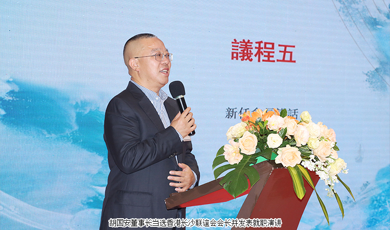 胡國安董事長在就職講話中表達(dá)了對各級領(lǐng)導(dǎo)、全體會(huì)員的感謝,并提出聯(lián)誼會(huì)將秉持 “凝聚團(tuán)結(jié)聯(lián)誼、愛國愛港愛家鄉(xiāng)”的宗旨,堅(jiān)定信念,強(qiáng)化政治引領(lǐng),積極學(xué)習(xí)貫徹黨的精神指示,落實(shí)“一國兩制”方針,凝聚愛國愛港力量;加強(qiáng)組織建設(shè),完善架構(gòu)與制度,創(chuàng)新服務(wù)方式,提升服務(wù)質(zhì)量,打造會(huì)員溫馨家園;深化湘港兩地交流合作,搭建多元平臺(tái),促進(jìn)共贏發(fā)展;積極投身社會(huì)事務(wù),履行社會(huì)責(zé)任,助力香港繁榮穩(wěn)定與祖國繁榮富強(qiáng)。他表示,此次換屆大會(huì)的成功舉行,為香港長沙聯(lián)誼會(huì)注入了新的活力與動(dòng)力。在新一屆領(lǐng)導(dǎo)班子的帶領(lǐng)下,聯(lián)誼會(huì)將繼續(xù)團(tuán)結(jié)在港湘籍人士及各界力量,積極推動(dòng)湘港兩地交流合作邁向更高層次、更廣領(lǐng)域,為兩地的繁榮發(fā)展書寫更加輝煌的篇章。