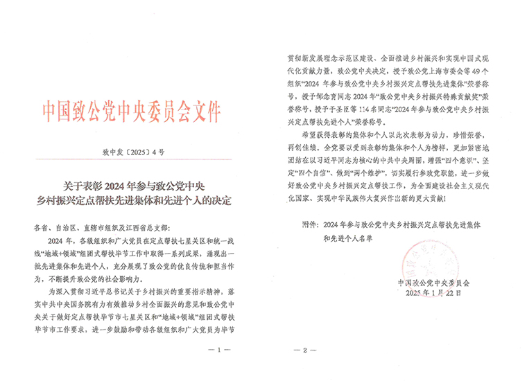 2024年,全國各級組織和廣大黨員在定點幫扶七星關區(qū)和統(tǒng)一戰(zhàn)線“地域+領域”組團式幫扶畢節(jié)工作中取得一系列成果,涌現(xiàn)出一批先進集體和先進個人,充分展示了致公黨的優(yōu)良傳統(tǒng)和擔當作為,不斷提升致公黨的社會影響力。會議表彰了2024年參與致公黨中央鄉(xiāng)村振興定點幫扶先進集體和先進個人。長沙市人大代表、致公黨湖南省委會“數字互聯(lián)”委員會名譽主任、綠之韻集團董事長胡國安榮獲“2024年度致公黨中央鄉(xiāng)村振興定點幫扶先進個人”榮譽稱號。