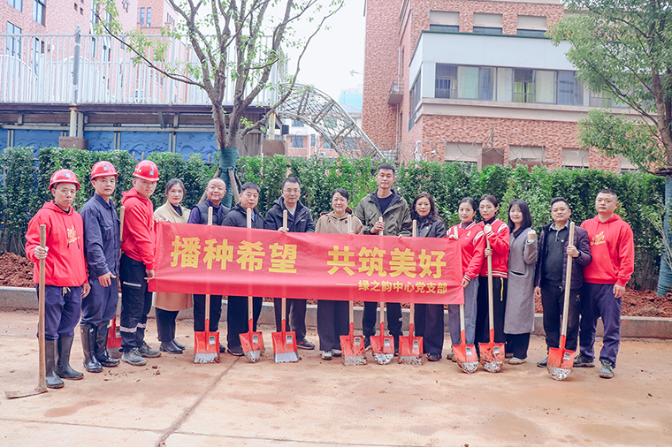 三月的風裹挾著春信的密語,將春意潑灑在綠之韻中心的園林間。3月11日,在植樹節(jié)來臨之際,綠之韻中心黨支部以“播種希望 共筑美好”為主題,在綠之韻中心開展植樹節(jié)主題黨日活動。綠之韻集團總裁勞嘉、綠之韻公益基金會秘書長蔣文、湖南綠之韻房地產(chǎn)開發(fā)有限公司總經(jīng)理周君四,副總經(jīng)理勞毅與綠之韻中心黨支部書記徐繼雷帶領黨員志愿者們共執(zhí)春鋤,以草木為墨,為綠之韻中心園林項目工筆春色。