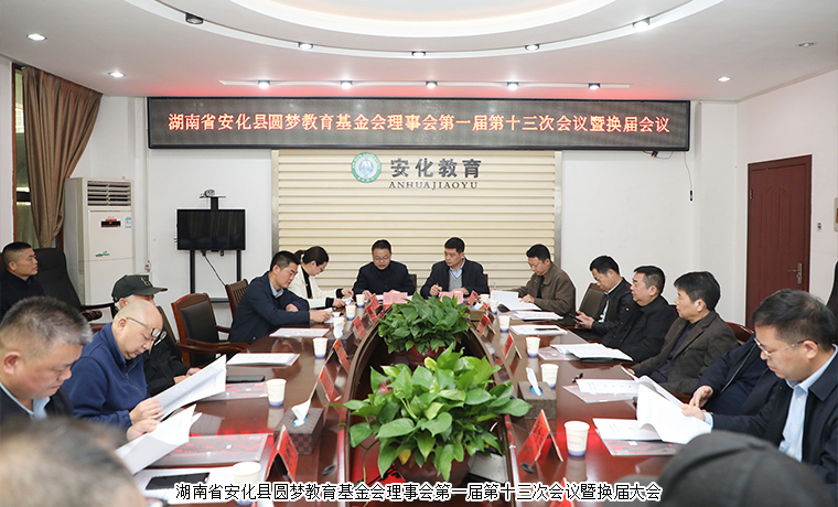 2025年4月2日,湖南省安化縣圓夢(mèng)教育基金會(huì)理事會(huì)第一屆第十三次會(huì)議暨換屆大會(huì)在安化縣教育局圓滿召開。益陽(yáng)市教育基金會(huì)副理事長(zhǎng)何湘旺、市教育基金會(huì)副理事長(zhǎng)兼秘書長(zhǎng)劉文凱;安化縣人民政府黨組成員、副縣長(zhǎng)莫超,安化縣政協(xié)副主席、縣工商聯(lián)主席劉暢術(shù),安化縣教育局黨組書記、局長(zhǎng)陳羽成,安化縣民政局黨組成員、副局長(zhǎng)劉紅兵,安化縣教育局黨組成員、副局長(zhǎng)劉周明等領(lǐng)導(dǎo)出席會(huì)議。安化縣人大代表、綠之韻集團(tuán)常務(wù)副總裁胡均安受邀出席會(huì)議,并當(dāng)選為基金會(huì)第二屆理事會(huì)理事。