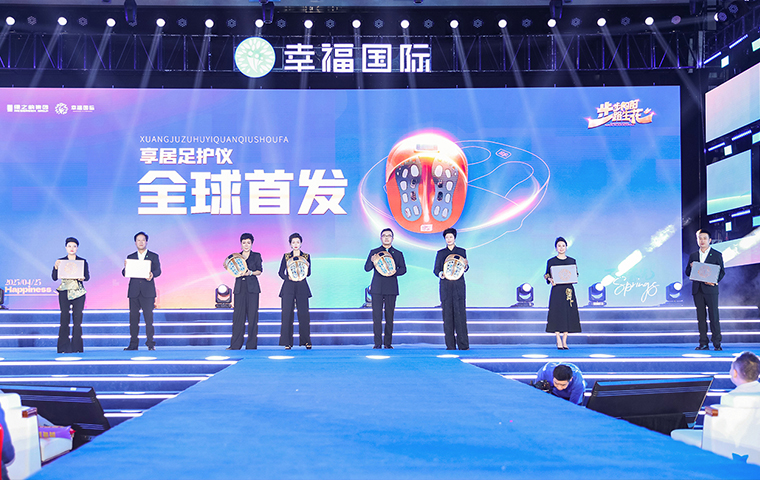 會上,還舉行了“享居足護儀”新品上市發(fā)布會。綠之韻健康專家委員會專家委員、綠之韻幸福國際市場商學院院長侯俊霞,綠之韻幸福國際商學院市場特聘教授、綠韻悅喜智能科技有限公司首席研發(fā)專家駱春崗,綠韻悅喜智能科技有限公司總經(jīng)理楊邢軒共同見證由綠之韻幸福國際自主研發(fā)的、具有核心競爭力、高含金量的“拳頭”新品——綠之韻享居足護儀的震撼發(fā)布,掀起了會場的高潮。