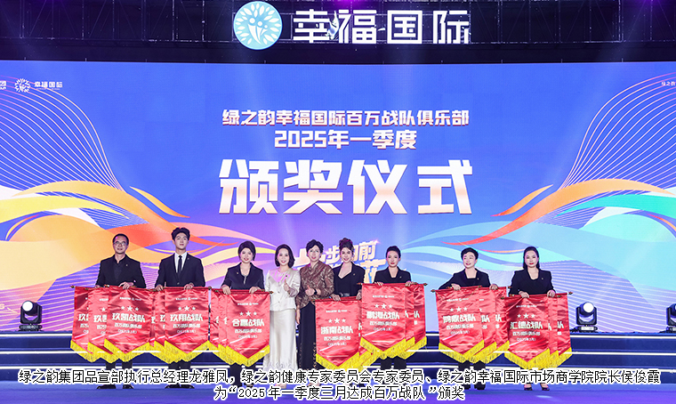 隨后,大會為2025年第一季度達成百萬業(yè)績的戰(zhàn)隊舉行了盛大的頒獎儀式。綠之韻集團市場運營中心市場業(yè)務總監(jiān)喻鳴鸞、綠之韻集團市場運營中心區(qū)域業(yè)務總監(jiān)譚紅為“2025年一季度一月達成百萬戰(zhàn)隊”頒獎。綠之韻幸福國際市場商學院特聘教授、綠韻悅喜智能科技有限公司首席研發(fā)專家駱春崗,綠韻悅喜智能科技有限公司總經(jīng)理楊邢軒為“2025年一季度二月達成百萬戰(zhàn)隊”頒獎。綠之韻集團品宣部執(zhí)行總經(jīng)理龍雅鳳,綠之韻健康專家委員會專家委員、綠之韻幸福國際市場商學院院長侯俊霞為“2025年一季度三月達成百萬戰(zhàn)隊”頒獎。綠之韻集團運營部執(zhí)行總經(jīng)理·國際商學院常務副院長陳敏為“2025年一季度一月百萬戰(zhàn)隊冠軍玖樂戰(zhàn)隊”頒獎。綠之韻國際商學院執(zhí)行院長黎芋成為“2025年一季度二、三月百萬戰(zhàn)隊冠軍玖德戰(zhàn)隊”頒獎。隨后,綠之韻國際商學院執(zhí)行院長黎芋成對綠之韻幸福國際的核心競爭力進行了全面解析。