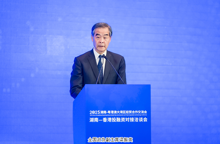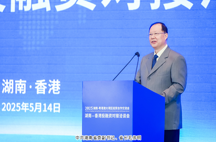 2025年5月12-16日,湖南代表團(tuán)在香港舉行系列經(jīng)貿(mào)招商交流活動(dòng),深入貫徹習(xí)近平總書記關(guān)于湖南工作的重要講話和指示批示精神,深度融入粵港澳大灣區(qū)。全國(guó)政協(xié)副主席梁振英出席湖南-香港投融資對(duì)接洽談會(huì),中共湖南省委副書記、省長(zhǎng)毛偉明率團(tuán)參加,并與香港特區(qū)政府署理行政長(zhǎng)官陳國(guó)基、中央人民政府駐香港特別行政區(qū)聯(lián)絡(luò)辦公室主任鄭雁雄座談。