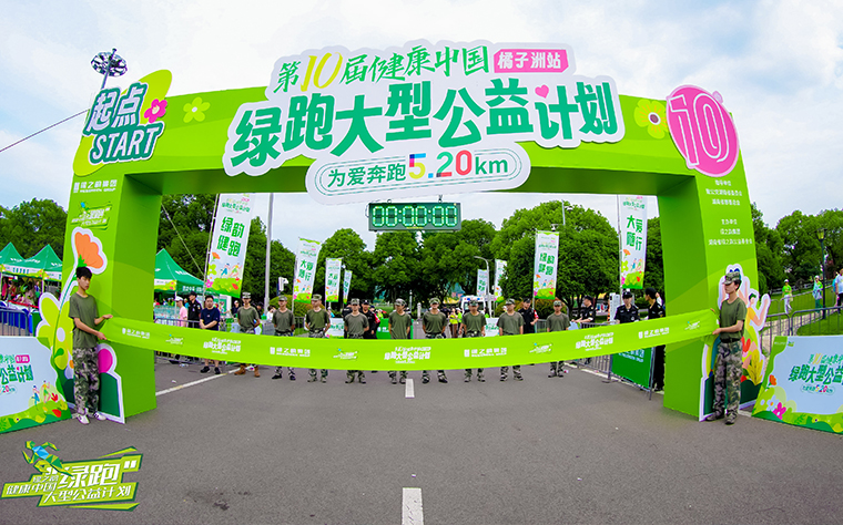 十載堅守,綠跑精神如炬火相傳,一路匯聚愛心與力量。啟動儀式上,奧運冠軍王明娟,世界冠軍羅丹,湖南省民政廳黨組成員、副廳長廖國核,致公黨湖南省委會副主委、長沙市政協(xié)副主席、致公黨長沙市委會主委黃鋒,中共長沙市委統(tǒng)戰(zhàn)部副部長、市政府僑辦主任成鋼,綠之韻集團董事長胡國安,總裁勞嘉,常務副總裁胡均安,副總裁夏運良,市場營銷中心總經理戴三省,常務副總經理梅其慧、綠之韻碧波庭創(chuàng)始人李水蓮等領導上臺拉動繩索,520個彩色氣球從“10”字造型的啟動臺中放飛,象征著“2025健康中國-綠跑大型公益計劃”正式啟動。