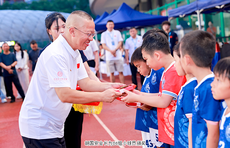 當(dāng)晚,少兒組賽事頒獎(jiǎng)環(huán)節(jié)如期舉行。胡國(guó)安會(huì)長(zhǎng)為 U6 組小球員頒獎(jiǎng),在工作人員引領(lǐng)下,他親手將獎(jiǎng)牌和紀(jì)念品送到孩子們手中,并親切合影。隨后,香港警察足球會(huì)主席陳憲鈞向長(zhǎng)沙市海外聯(lián)誼會(huì)、香港長(zhǎng)沙聯(lián)誼會(huì)、長(zhǎng)沙足協(xié)贈(zèng)送紀(jì)念品,進(jìn)一步增進(jìn)了兩地足球界情誼,為湘粵港澳交流添上濃厚一筆。