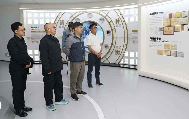 調(diào)研組首先參觀了綠之韻中心數(shù)智化科技展廳。展廳設(shè)計(jì)深度融入企業(yè)“水之道”文化內(nèi)核,以水的流動(dòng)與滋養(yǎng)為敘事脈絡(luò),融合東方哲學(xué)與西方技術(shù),展現(xiàn)企業(yè)的發(fā)展初心與文化積淀。展廳運(yùn)用數(shù)字互動(dòng)技術(shù),打造沉浸式智慧展示空間,多維度呈現(xiàn)綠之韻的企業(yè)文化、發(fā)展歷程、黨建成果、公益實(shí)踐、產(chǎn)品體系、科研布局與戰(zhàn)略愿景。胡國(guó)安董事長(zhǎng)向調(diào)研組詳細(xì)介紹了企業(yè)的發(fā)展脈絡(luò),展廳內(nèi)陳列的最新科技成果與創(chuàng)新產(chǎn)品,生動(dòng)體現(xiàn)了綠之韻在大健康產(chǎn)業(yè)的前沿探索與扎實(shí)積累。