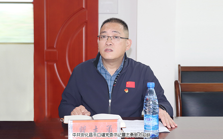 活動(dòng)由平口鎮(zhèn)人大主席夏緒朋主持?;顒?dòng)伊始,全體與會(huì)黨員在黨旗下肅立,重溫入黨誓詞,鏗鏘有力的誓言回蕩在會(huì)場(chǎng),彰顯了黨員干部不忘初心、牢記使命的堅(jiān)定信念。中共安化縣平口鎮(zhèn)黨委書(shū)記瞿志勇致歡迎辭。他對(duì)綠之韻集團(tuán)黨委一行的到來(lái)表示熱烈歡迎與衷心感謝。他指出,此次村企共建是推動(dòng)平口鎮(zhèn)鄉(xiāng)村振興戰(zhàn)略落地生根的重要舉措,期盼通過(guò)黨組織的橋梁紐帶作用,實(shí)現(xiàn)資源共享、優(yōu)勢(shì)互補(bǔ),為平山村的發(fā)展注入新的活力。