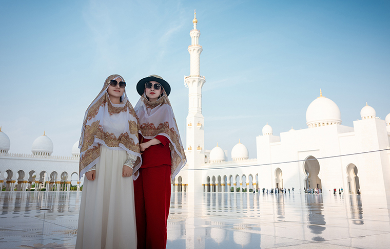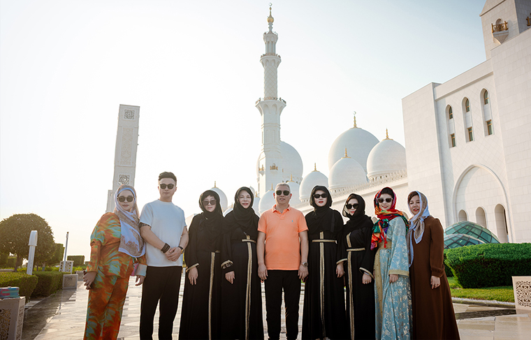 謝赫扎伊德清真寺,為紀(jì)念謝赫扎耶德而建,是伊斯蘭建筑的瑰麗典范。純白漢白玉雕琢的圓頂與尖塔,在日光下熠熠生輝。綠之韻人漫步其間,沉浸于神圣與寧?kù)o,感悟信仰與文明的力量。