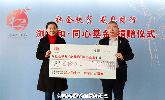 胡均安副總裁在捐贈(zèng)活動(dòng)現(xiàn)場表示,在瀏陽這塊紅色沃土,綠之韻生根發(fā)芽、茁壯成長,受到黨和政府以及各級(jí)部門的關(guān)懷與支持?!爸赂凰荚?、富而思進(jìn)”是綠之韻一直堅(jiān)持的企業(yè)發(fā)展理念,社會(huì)扶貧“瀏陽和·同心基金”的成立為我們參與社會(huì)扶貧提供了新的途徑,我們將一如既往地積極承擔(dān)企業(yè)社會(huì)責(zé)任,在企業(yè)健康發(fā)展的同時(shí),努力讓企業(yè)的發(fā)展成果惠及更多需要幫助的人,用行動(dòng)和愛心與瀏陽這座城市共同成長與發(fā)展!