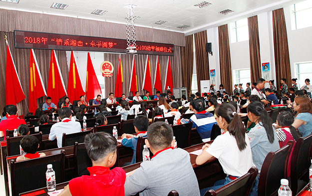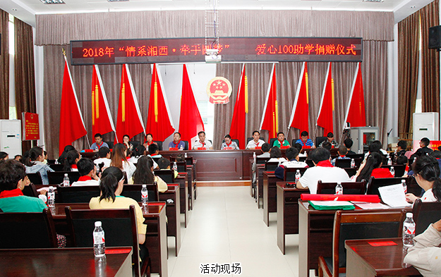 2018年6月11-13日,2018“情系湘西·牽手圓夢”愛心100結(jié)對幫扶活動在龍山縣茨巖塘鎮(zhèn)成功舉行。長沙團市委副書記康然,湘西團州委副書記張世田,中共龍山縣委常委、組織部部長石紅梅,中共龍山縣委常委張紅民,長沙青基會理事長、市希望辦主任羊舒麟,湘西州青基會秘書長孫少宣,龍山縣教體局副局長劉斌蘭,龍山團縣委副書記黃宜超及愛心企業(yè)代表參加活動。綠之韻集團黨委書記劉云受邀參加本次活動。