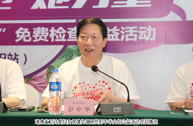 啟動(dòng)儀式上,湖南省衛(wèi)計(jì)委婦女保健處調(diào)研員彭中華介紹公益活動(dòng)項(xiàng)目情況。關(guān)愛女性健康“兩癌”免費(fèi)檢查公益活動(dòng)是由省委統(tǒng)戰(zhàn)部發(fā)起并統(tǒng)籌組織,各地市州相關(guān)部門,省海外聯(lián)誼會(huì)協(xié)助執(zhí)行,綠之韻集團(tuán)支持參與的大型公益項(xiàng)目。其目的是在幫助貧困家庭婦女享受到“兩癌”的檢測(cè)與防范科普宣傳有效預(yù)防與避免婦女“兩癌”的患病與惡化風(fēng)險(xiǎn),在宣傳兩癌科普知識(shí)的同時(shí)倡導(dǎo)國(guó)民踐行健康的生活狀態(tài)。
