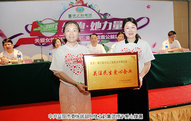2018年5月16日,由中共湖南省委統(tǒng)戰(zhàn)部發(fā)起主辦,湖南省婦女聯(lián)合會(huì)、湖南省衛(wèi)生和計(jì)劃生育委員會(huì)、湖南省慈善總會(huì)、湖南省海外聯(lián)誼會(huì)指導(dǎo),中共益陽(yáng)市委統(tǒng)戰(zhàn)部承辦,益陽(yáng)市民政局、益陽(yáng)市婦女聯(lián)合會(huì)、益陽(yáng)市衛(wèi)生與計(jì)劃生育委員會(huì)組織實(shí)施,綠之韻集團(tuán)支持參與的大型公益項(xiàng)目“綠跑?她力量 關(guān)愛女性健康——‘兩癌’免費(fèi)公益檢查活動(dòng)啟動(dòng)儀式”在益陽(yáng)市舉行。