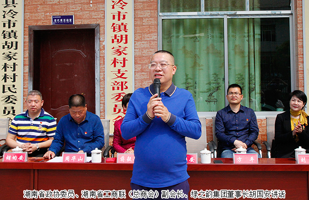 裊裊鄉(xiāng)音濃,拳拳桑梓情。2018年4月3日“情系家鄉(xiāng)建設(shè),助力精準(zhǔn)扶貧”捐贈(zèng)儀式在胡家村村委舉行。湖南省政協(xié)委員、湖南省工商聯(lián)(總商會(huì))副會(huì)長(zhǎng)、綠之韻集團(tuán)董事長(zhǎng)胡國(guó)安向胡家村村委會(huì)捐助善款60萬(wàn)元,用于資助胡家村基礎(chǔ)設(shè)施建設(shè)。安化縣政協(xié)副主席蔣毅華,中共安化縣冷市鎮(zhèn)黨委書記周華山、中共安化縣冷市鎮(zhèn)黨委副書記、鎮(zhèn)長(zhǎng)方平,胡家村村支部書記胡利民,綠之韻集團(tuán)常務(wù)副總經(jīng)理胡均安,綠之韻集團(tuán)黨委書記劉云,綠之韻公益基金會(huì)秘書長(zhǎng)蔣文及綠之韻集團(tuán)黨員代表、胡家村黨員代表參加活動(dòng)。