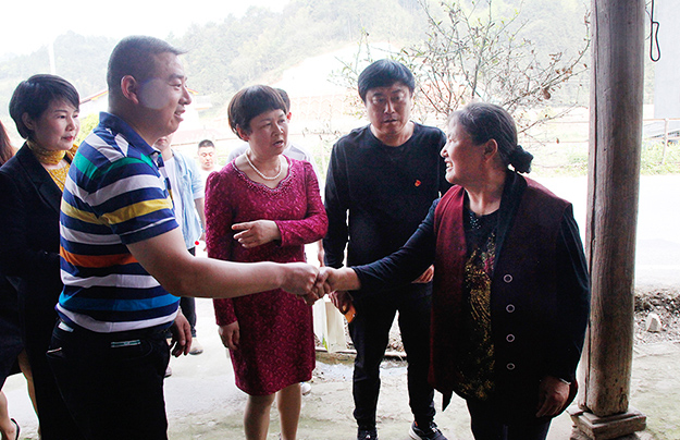 ▲ 2016年2月4日,胡國(guó)安董事長(zhǎng)帶領(lǐng)綠之韻愛(ài)心志愿者們?cè)俅位氐胶掖?,為村里的貧困戶送?lái)了慰問(wèn)金、米油和日用品,為鄉(xiāng)親們送上了新春的祝福。