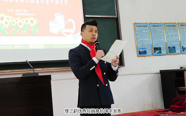 2017年11月29日,綠之韻集團安徽分公司“綠韻圓夢·書香助學”活動走進合肥市龍?zhí)翆W校。合肥市工商局經濟檢查執(zhí)法局副局長梁宏祥受邀參加活動。綠之韻集團安徽分公司經理趙軍攜綠之韻高級經銷商葛慧霞、杭坤宇和張善慧 、溫民主 、吳元華 、邵明月 、高愛華 、尚元芹 、張新娟 、賈付勤 、侯俊 、李剛 、馬蘭 、郭鳳 、張城濤 、張龍等愛心志愿者參加活動。